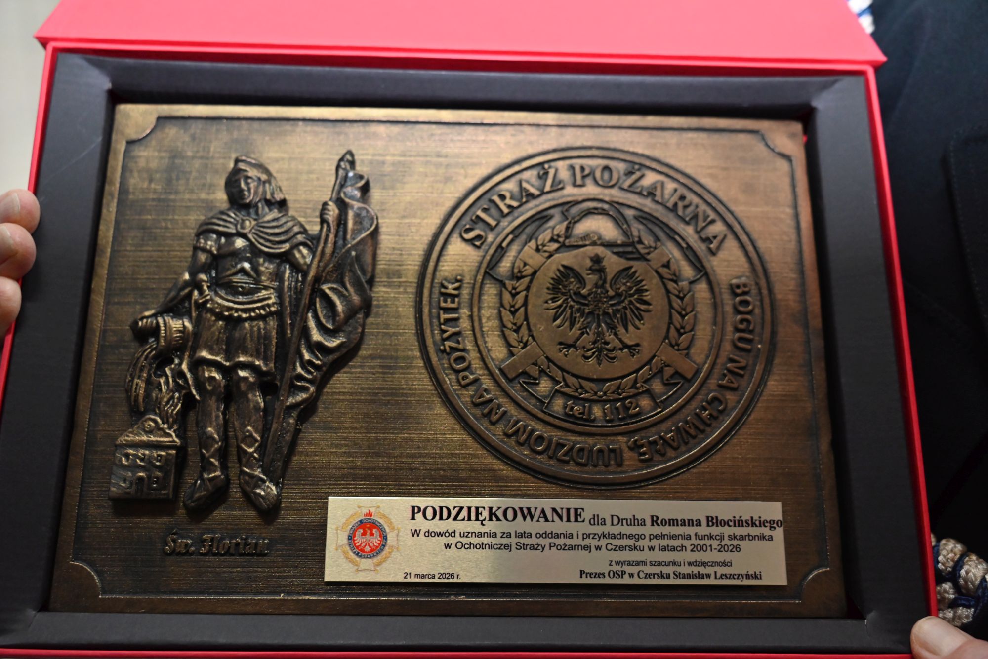 Nie zabrakło wzruszających chwil – druhowi odśpiewano „Sto lat”, a on sam podziękował współpracownikom, wręczając im pamiątkowe upominki. W uznaniu zasług podjęto także uchwałę o nadaniu mu tytułu Honorowego Prezesa OSP w Czersku.