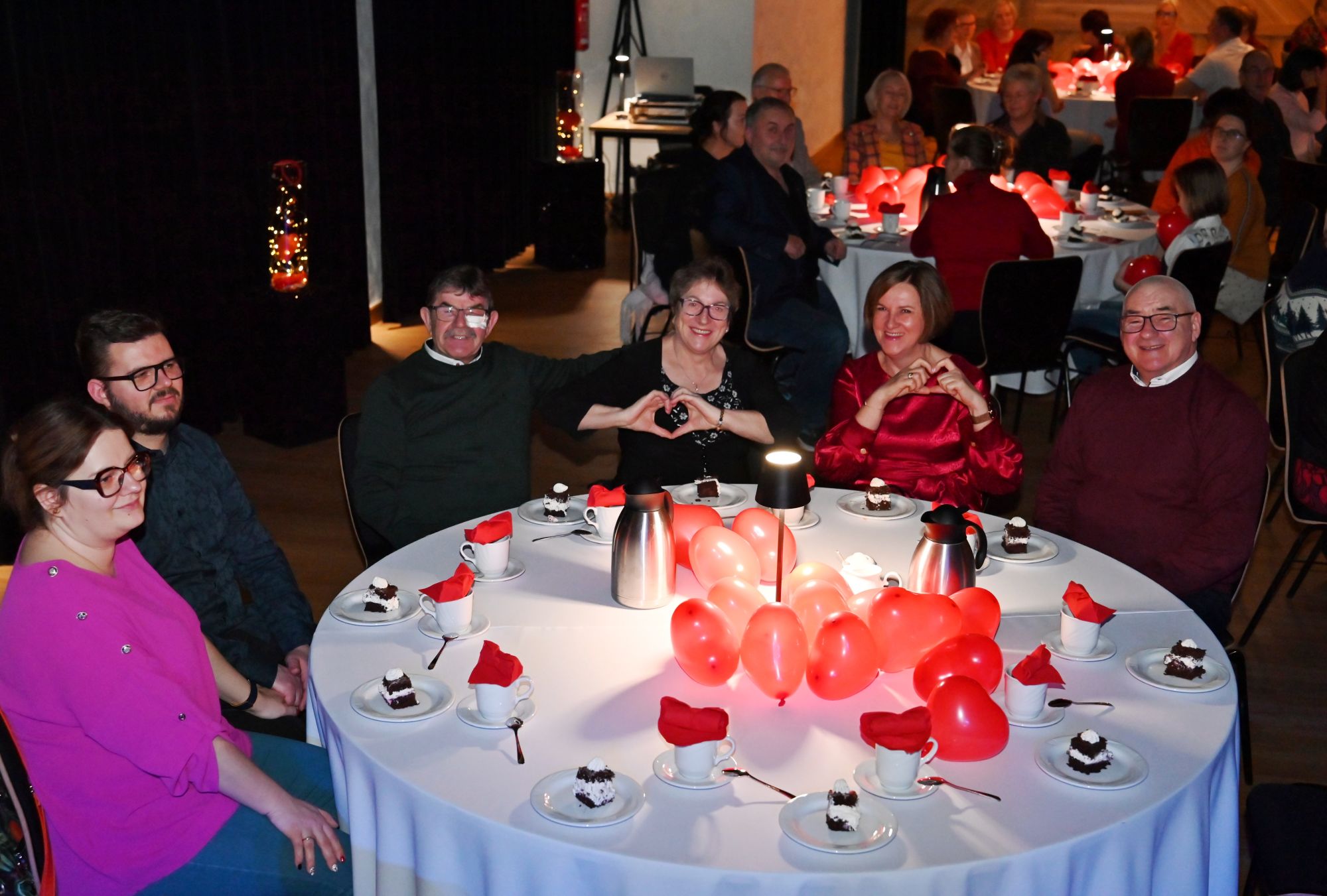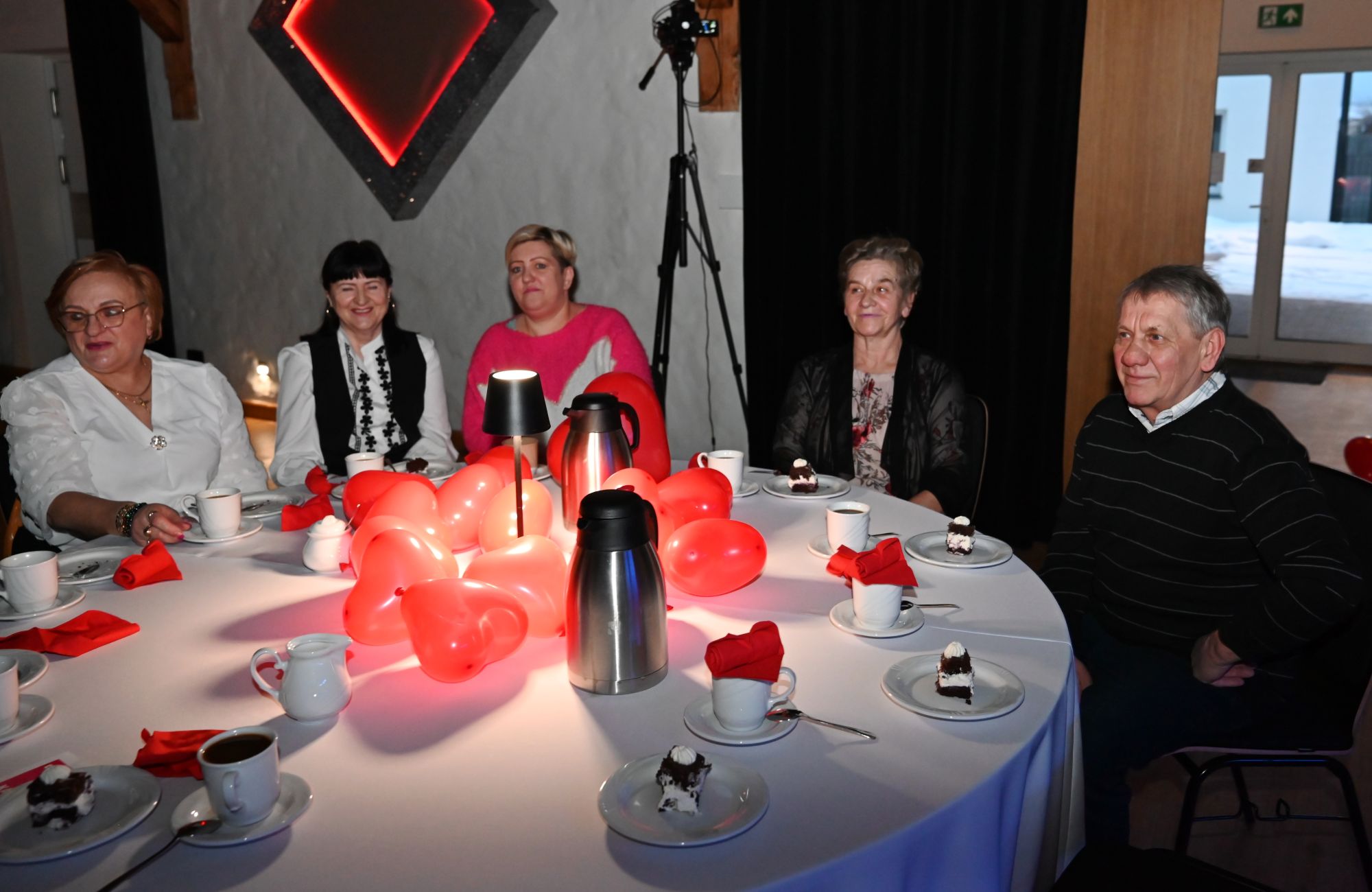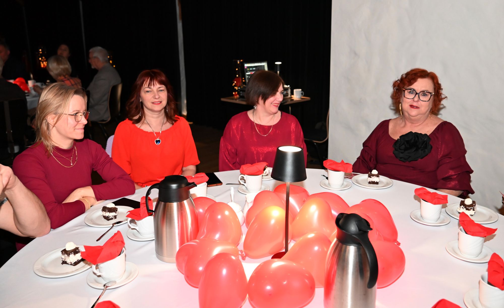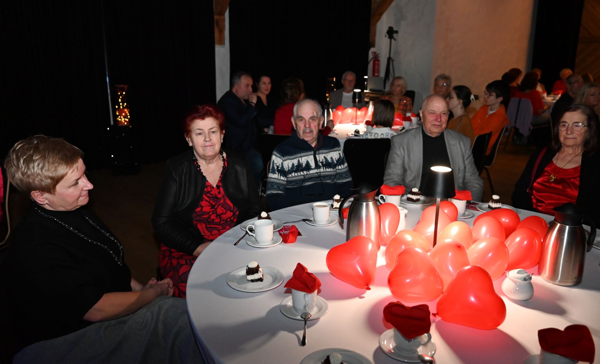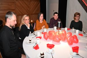 Uczestnicy wydarzenia zasiedli przy stolikach, delektując się kawą i wspólnie przeżywając muzyczne chwile w kameralnej, pełnej ciepła przestrzeni. Romantyczne brzmienia tworzyły nastrój sprzyjający rozmowom, uśmiechom i świętowaniu walentynek w spokojnej, artystycznej oprawie.