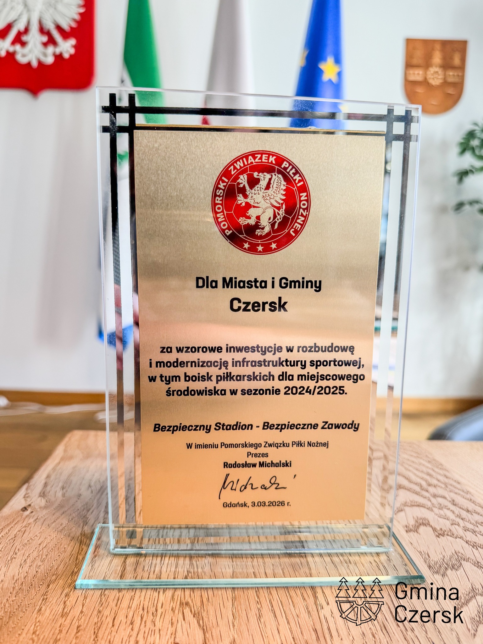 Czersk znalazł się w gronie samorządów wyróżnionych podczas II konferencji „Bezpieczny Stadion – Bezpieczne Zawody”, organizowanej przez Pomorski Związek Piłki Nożnej.