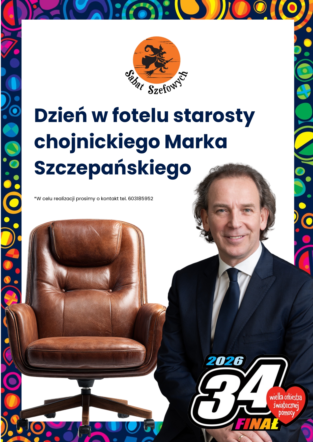 To się naprawdę wydarzy! 🔥 Jutro podczas Śniadania z Sabatem będzie można zlicytować… dzień pracy Starosty Chojnickiego Marka Szczepańskiego 🤝