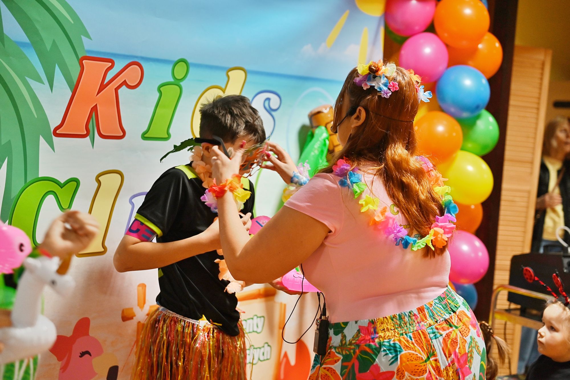 Na dzieci czekało mnóstwo atrakcji – gry, zabawy ruchowe oraz tańce, które z ogromnym zaangażowaniem prowadzili animatorzy z Kids Club. Ich energia i pomysłowość sprawiły, że młodzi goście chętnie brali udział w kolejnych zabawach, a uśmiechy nie schodziły im z twarzy.