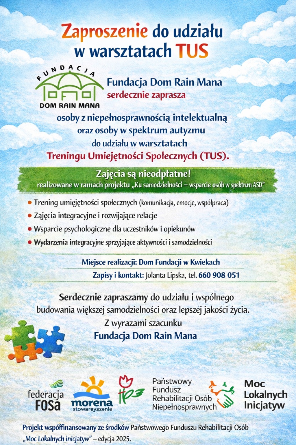 Serdecznie zapraszamy do udziału i wspólnego budowania większej samodzielności oraz lepszej jakości życia.