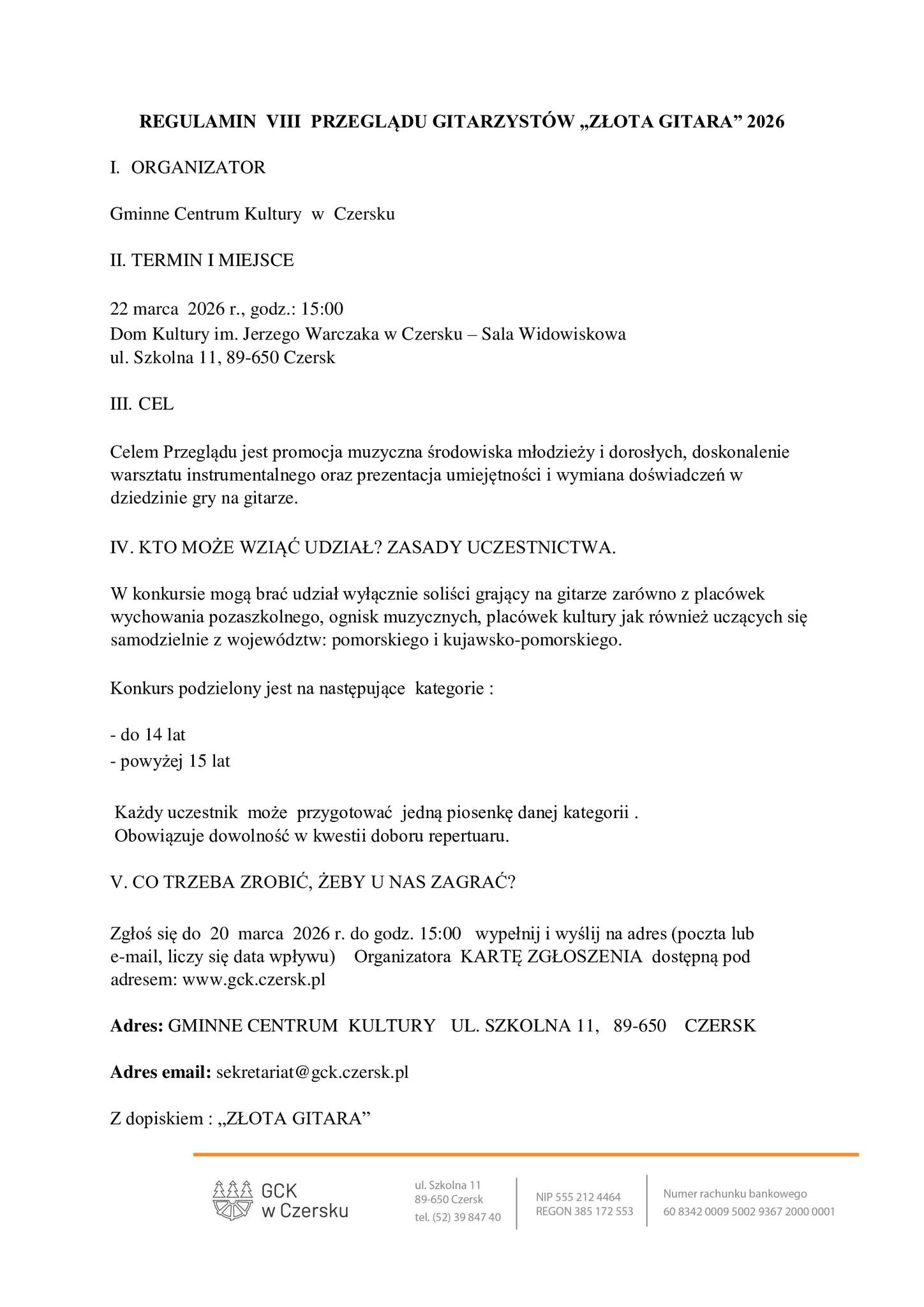 GM. CZERSK. Konkurs Złota Gitara