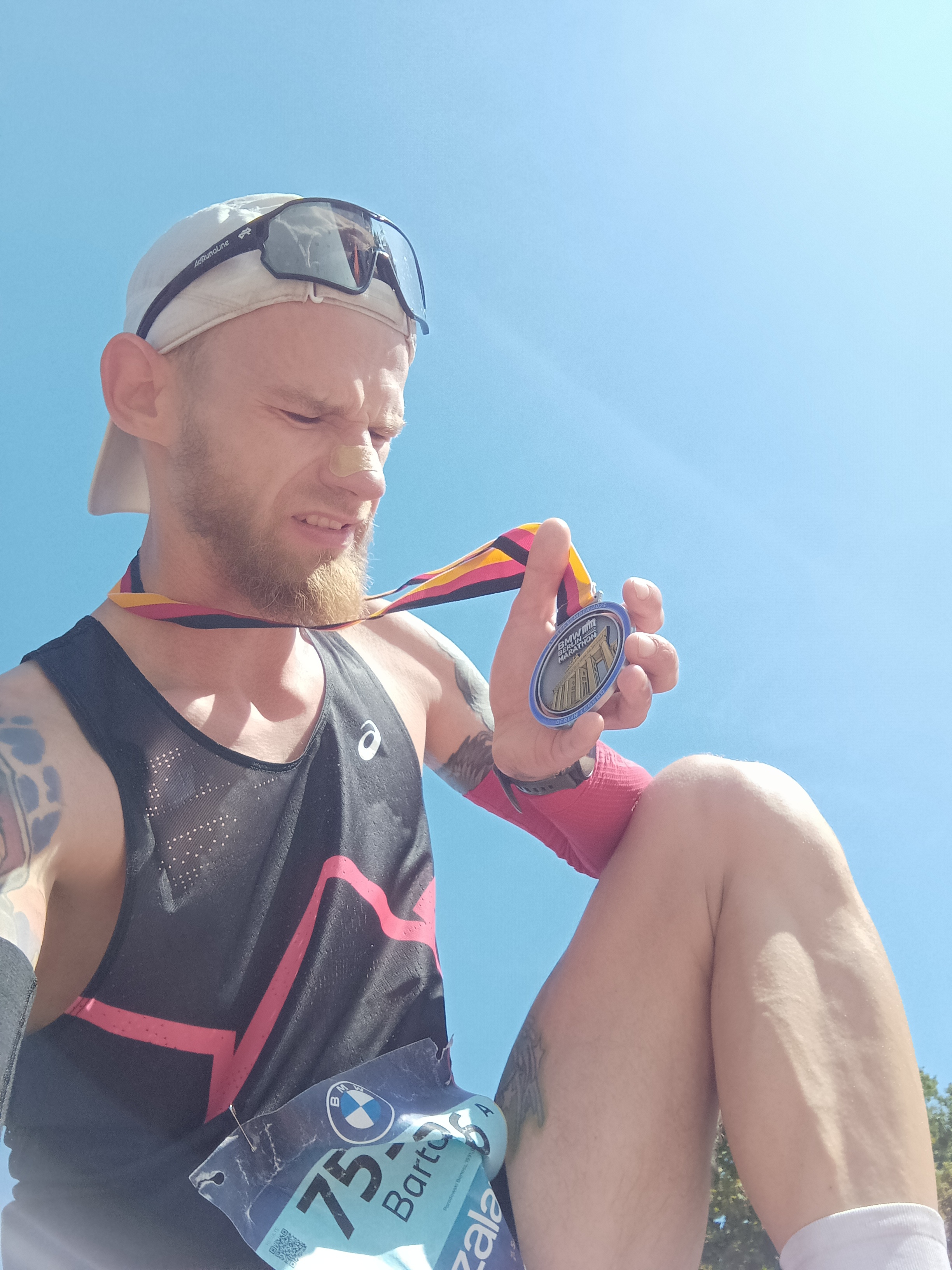 Pogoda podczas berlińskiego maratonu była sporym zaskoczeniem i chyba po raz pierwszy w historii tej imprezy temperatura była tak wysoka (od 21-28 stopni Celsjusza). Ciepło nie sprzyjało zawodnikom, więc trzeba było podejmować rozsądne decyzje podczas biegu. Mimo dość ciężkiego startu jestem zadowolony z tego jak to rozegrałem i z końcowego wyniku, gdzie linie mety przekroczyłem z czasem 2:41:48 uzyskując 525 miejsce w klasyfikacji generalnej na ok. 50 000 zawodników kończących bieg.