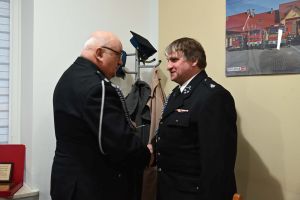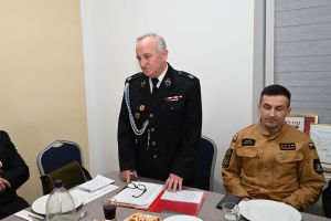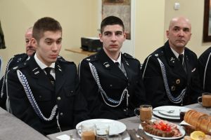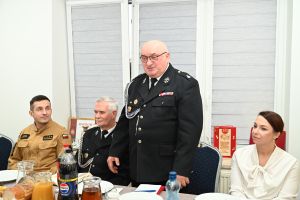 Podczas spotkania wręczono również wyjątkowe wyróżnienie dla wieloletniego druhna jednostki. Andrzej Bakhaus otrzymał odznakę za 45 lat służby w straży pożarnej, co spotkało się z dużym uznaniem i gratulacjami ze strony zgromadzonych.