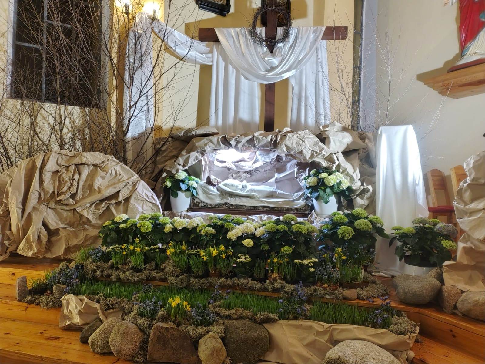 W Parafii pw. Świętego Józefa w Mokrem k. Czerska przygotowano w tym roku wyjątkowy Grób Pański, który łączy szlachetność formy z głęboką symboliką liturgiczną oraz pięknem naturalnych dekoracji.