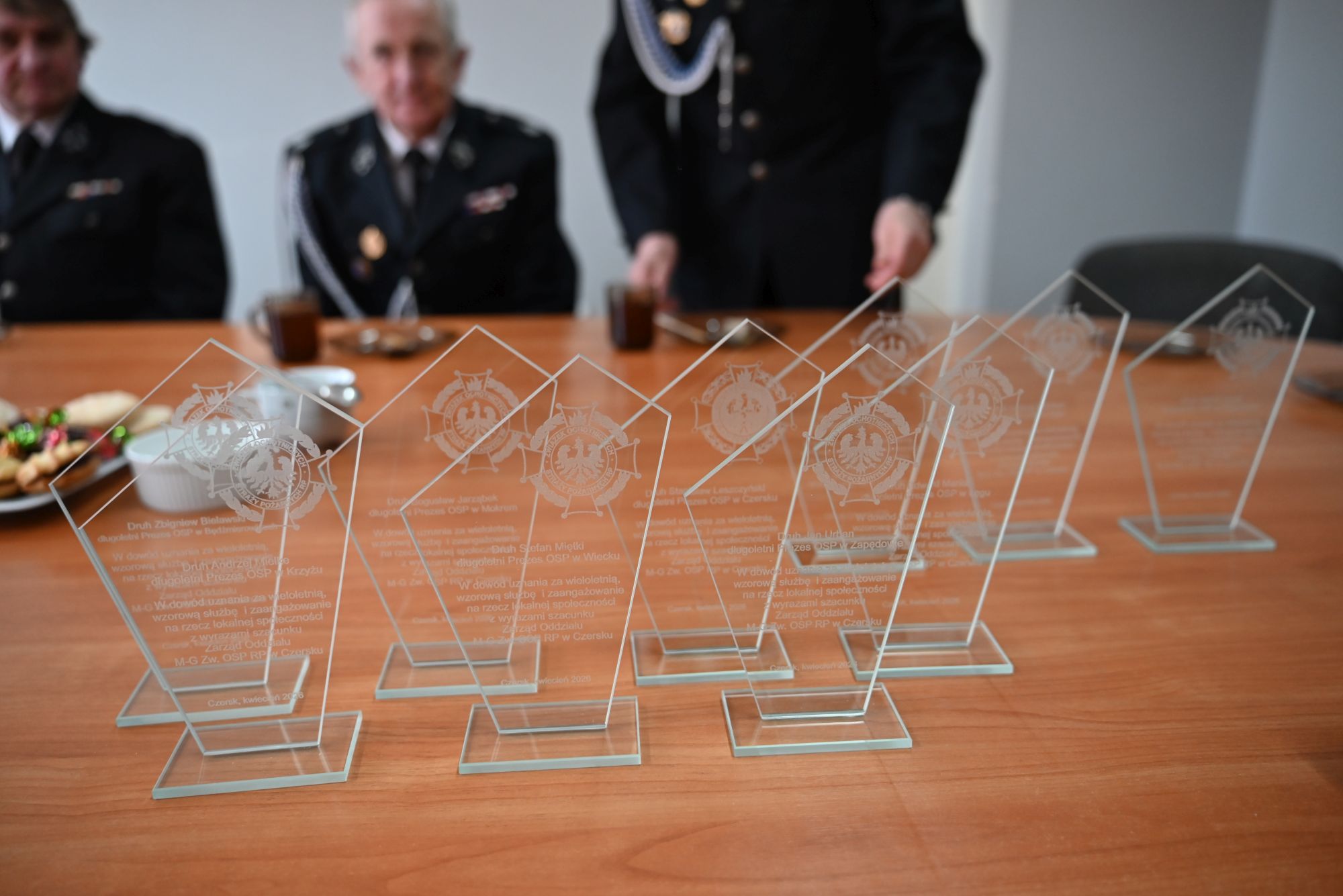 Podczas uroczystości wręczono pamiątkowe statuetki oraz podziękowania, które były wyrazem wdzięczności za wieloletnią służbę, zaangażowanie oraz wkład w rozwój jednostek i bezpieczeństwo mieszkańców.