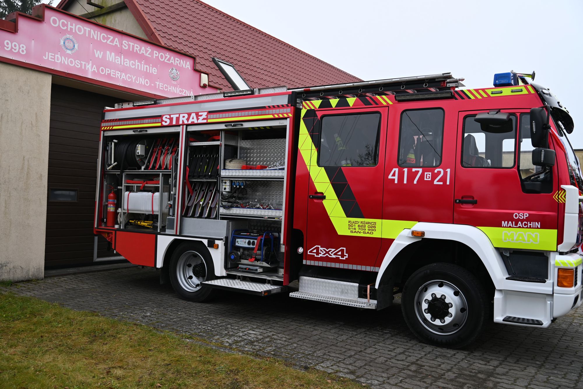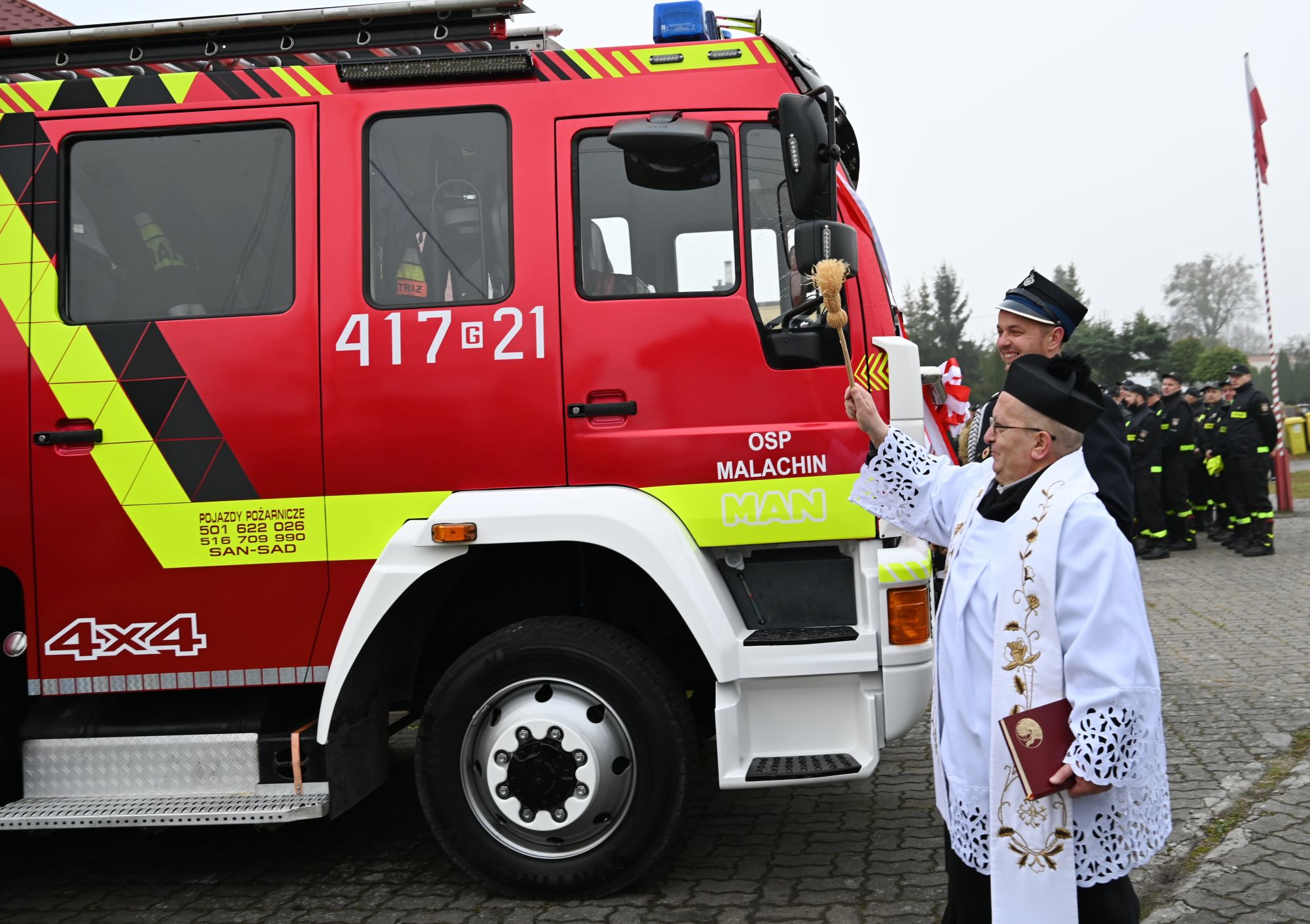 Podczas tegorocznego „Śledzika” miało miejsce wyjątkowe wydarzenie – oficjalne przekazanie nowego nabytku dla OSP Malachin i uroczyste włączenie go do podziału bojowego. Przypomnijmy, jednostka wzbogaciła się o samochód ratowniczo–gaśniczy marki MAN z napędem 4x4 i zbiornikiem o pojemności 3000 litrów wody. Choć pojazd jest używany, jego stan techniczny i wyposażenie znacząco poprawią gotowość bojową strażaków oraz bezpieczeństwo mieszkańców.