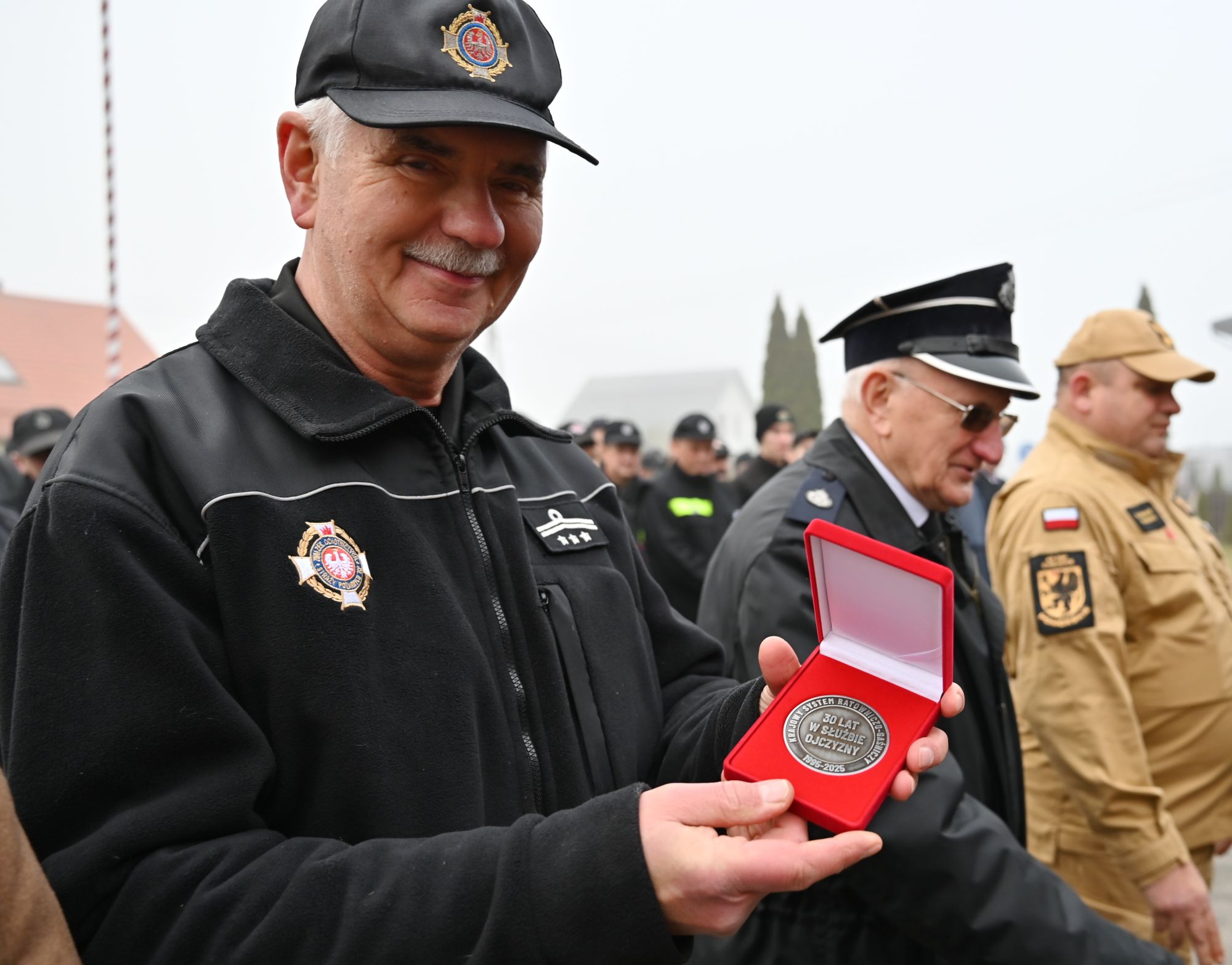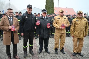 Podczas zbiórki nastąpiło pożegnanie dotychczasowego Zarządu Miejsko-Gminnego OSP, przemawiał druh Zbigniew Bielawski (wideo poniżej). Komendant KP PSP w Chojnicach Henryk Koźlewicz wręczył też medale (`30 LAT W SŁUŻBIE OJCZYZNY`) dla osób zaangażowanych z okazji 30 lat systemu KSRG (zdjęcie poniżej). Medale otrzymali - burmistrz Daniel Szpręga, komendant Andrzej Kuchenbecker, prezes OSP Czersk Stanisław Leszczyński oraz naczelnik OSP Rytel Sławomir Woziński.
