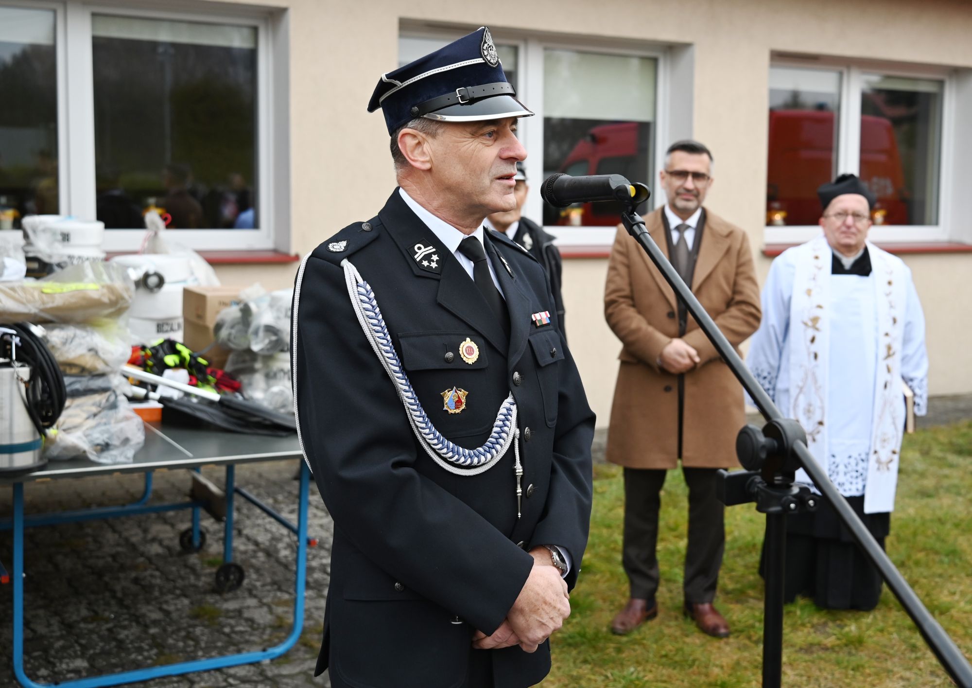 Uroczystość rozpoczęła się od symbolicznego gaszenia pożaru i złożenia meldunków. Następnie uczestnicy przemaszerowali wspólnie na miejsce zbiórki, gdzie odbyła się dalsza część wydarzenia. Podzielono sprzęt zakupiony z diety strażackich i środki z MSWiA – około 45 tys. zł), były to m.in. hełmy, rękawice, koszarówki, węże, latarki, buty. Nie zabrakło modlitwy w intencji strażaków i ich rodzin, a także podziękowań za całoroczną służbę, współpracę i wsparcie finansowe, dzięki któremu możliwe jest doposażanie jednostek w nowoczesny sprzęt ratowniczy.