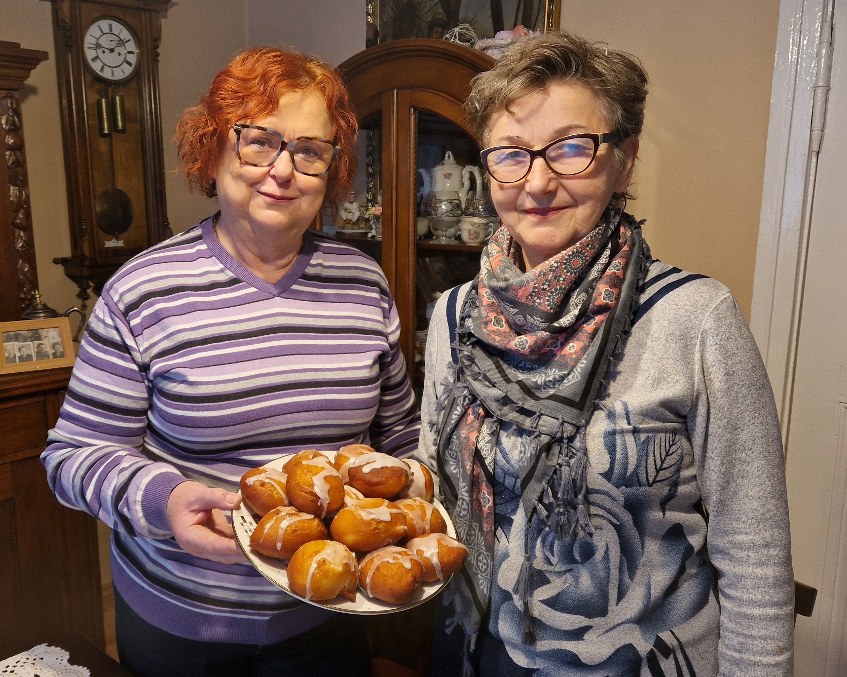 Panie z KGW Łężanki, szefowa Teresa Kropidłowska oraz jej zastępczyni Gabriela Babinska prezentują swojskie pączki. Dziś przy TŁUSTYM CZWARTKU warto przypomnieć przepis Pani Gabrieli, która wczoraj upiekła już 150 pączków, nie wiadomo czy czasami nie trzeba będzie przygotować kolejnych…