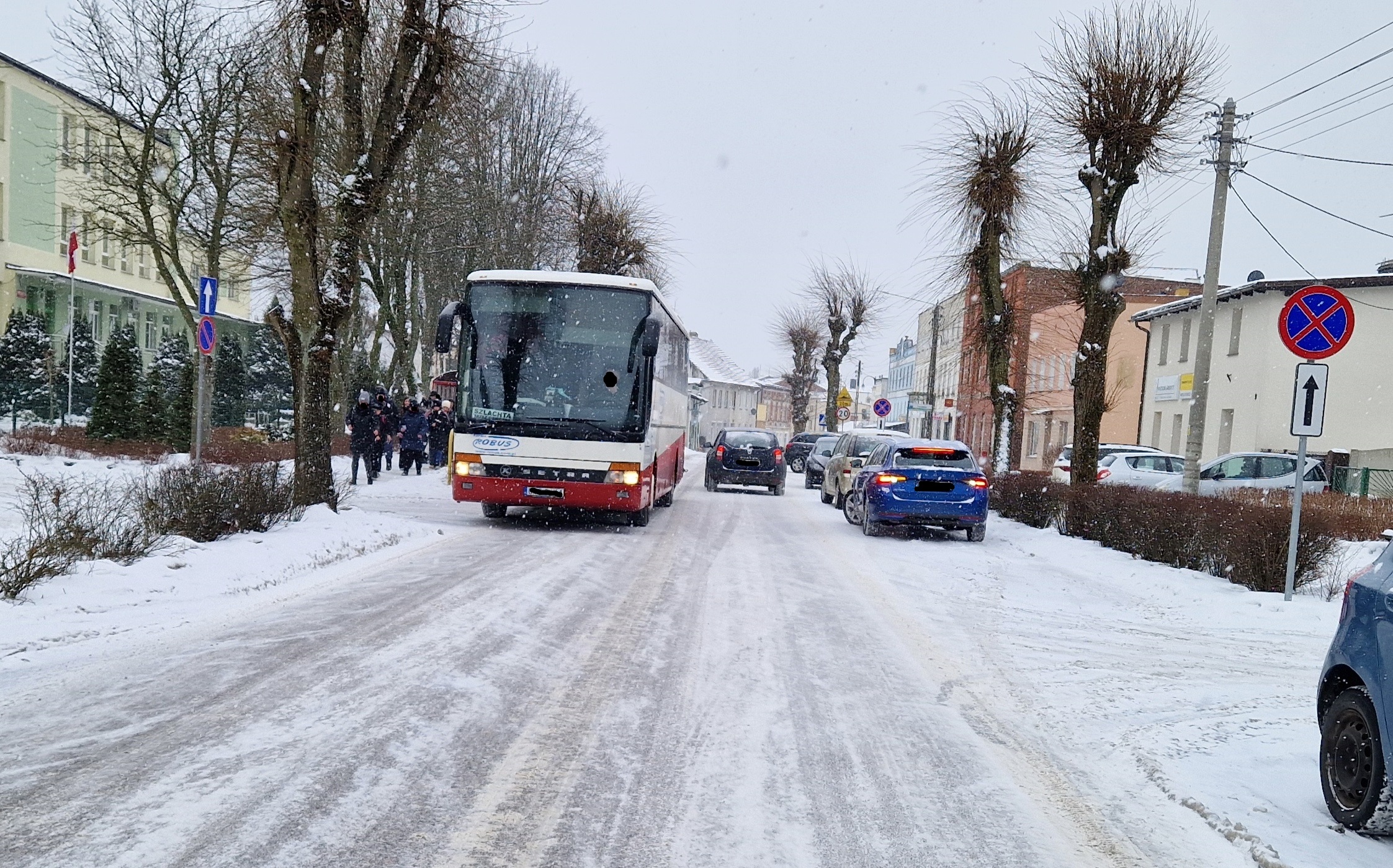W rejonie tymczasowego przystanku na ul. Dworcowej wprowadzono zakaz parkowania pojazdów - wzdłuż ulicy, ponieważ w przypadku przyjazdu autobusów i jednoczesnym pozostawieniu aut na drodze jest tam ciasno.