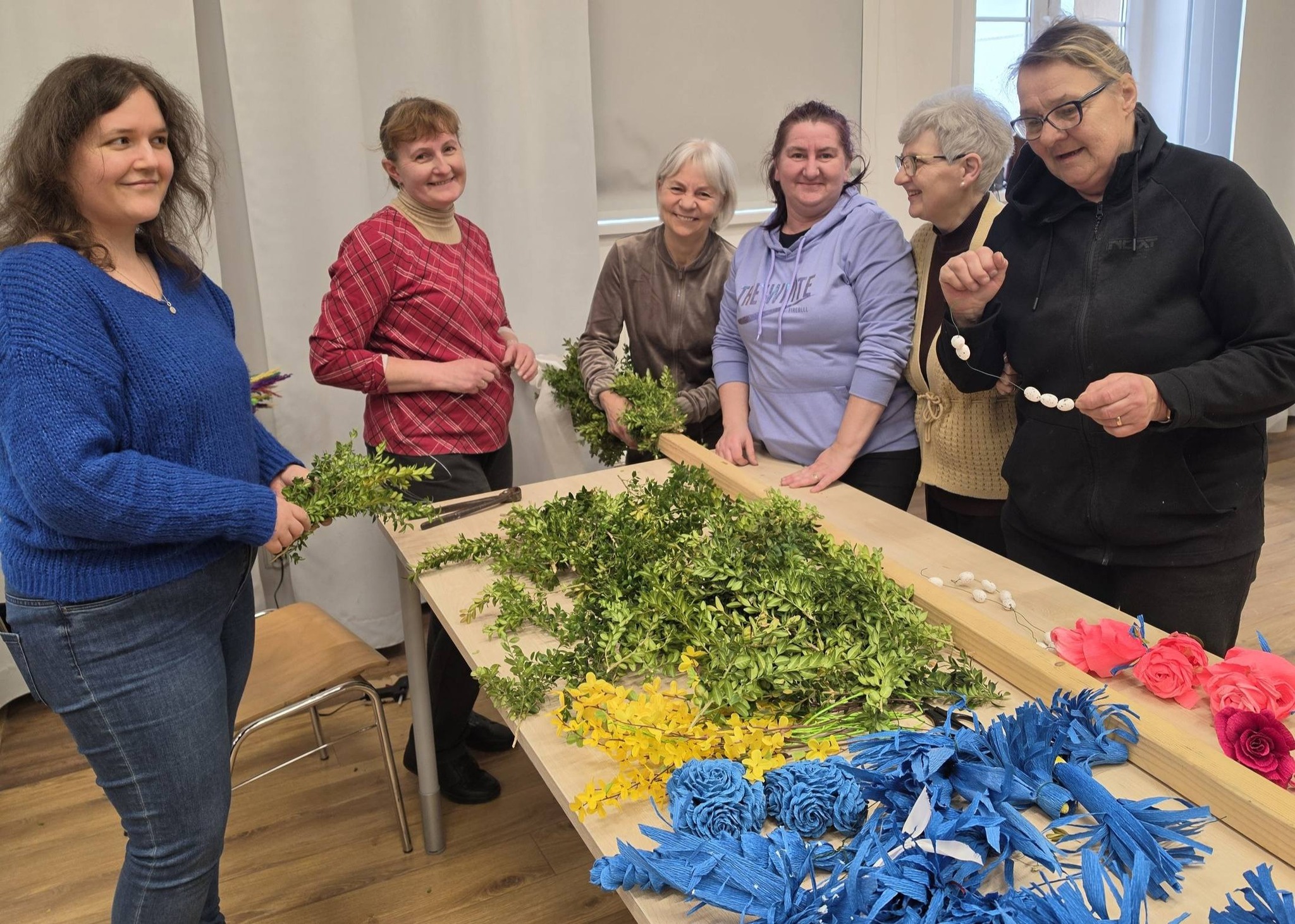 Za nami niezwykłe warsztaty tworzenia palm wielkanocnych — pełne uśmiechu, współpracy i prawdziwie świątecznej atmosfery. Było twórczo, kolorowo i bardzo pracowicie, bo tworzenie palm okazało się zajęciem wymagającym cierpliwości, precyzji oraz ogromnego zaangażowania uczestników.