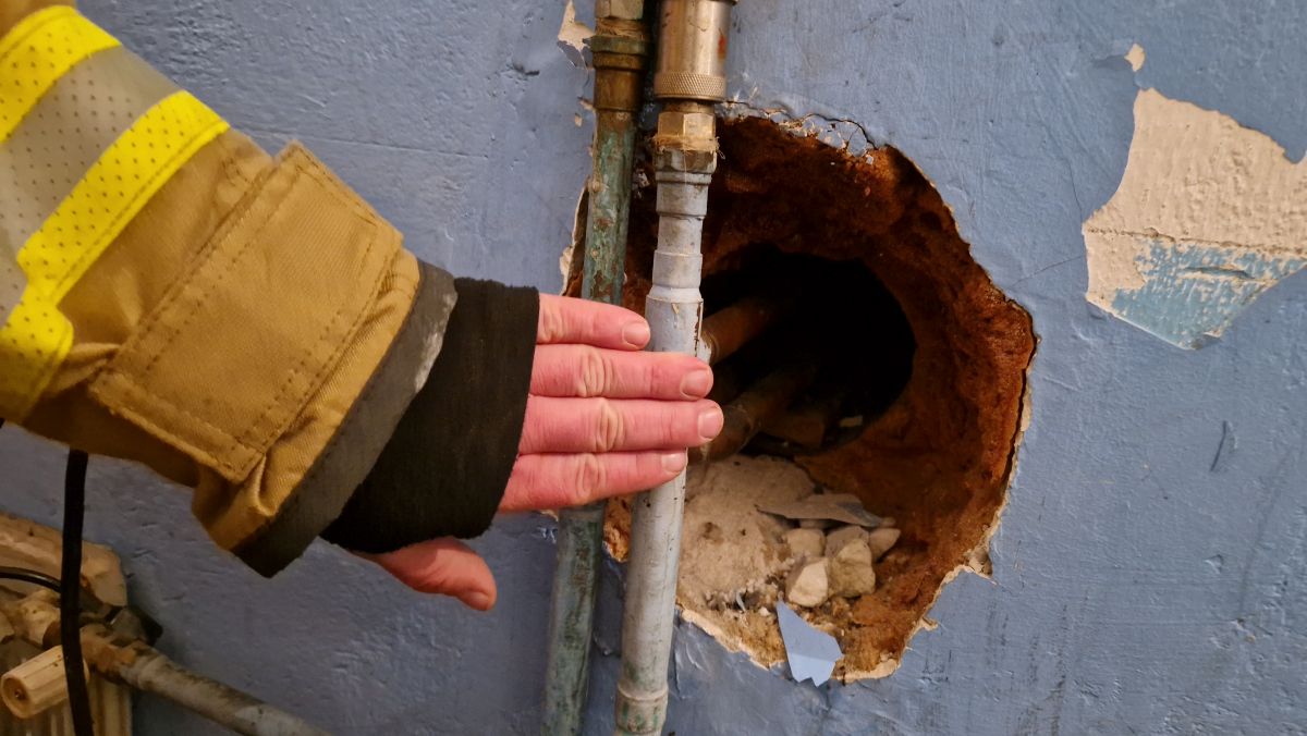 Dawid Łepek pokazuje tymczasowe źródła ciepła.