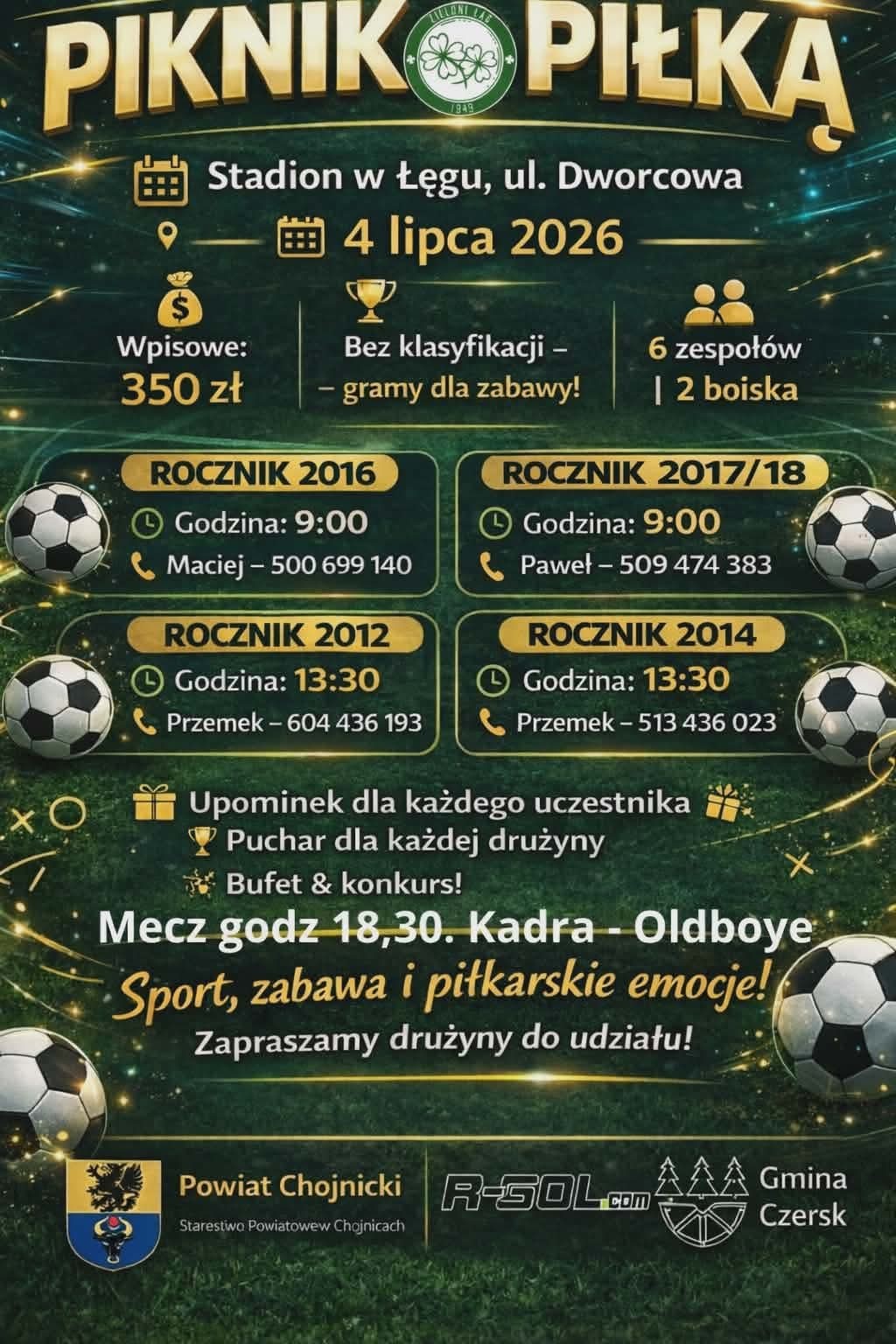 Już 4 lipca Stadion w Łęgu wypełni się sportowymi emocjami! Zapraszamy młodych piłkarzy i piłkarki na wyjątkowy turniej, w którym liczy się przede wszystkim dobra zabawa! 🏆