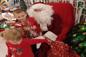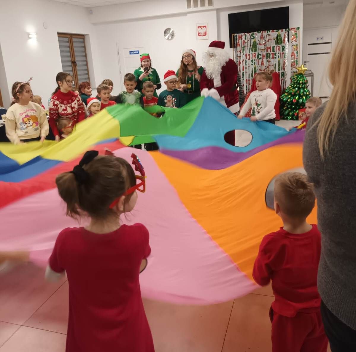 Najbardziej wyczekiwanym momentem było oczywiście pojawienie się Świętego Mikołaja. Każde dziecko miało okazję porozmawiać z gościem, odebrać prezent i zrobić pamiątkowe zdjęcie – a radość na ich twarzach mówiła wszystko.
