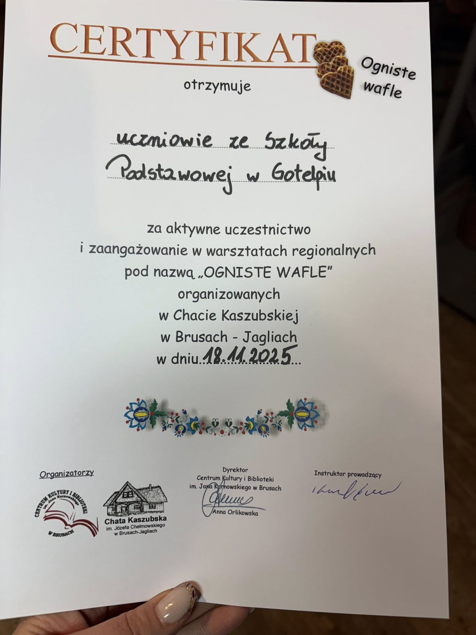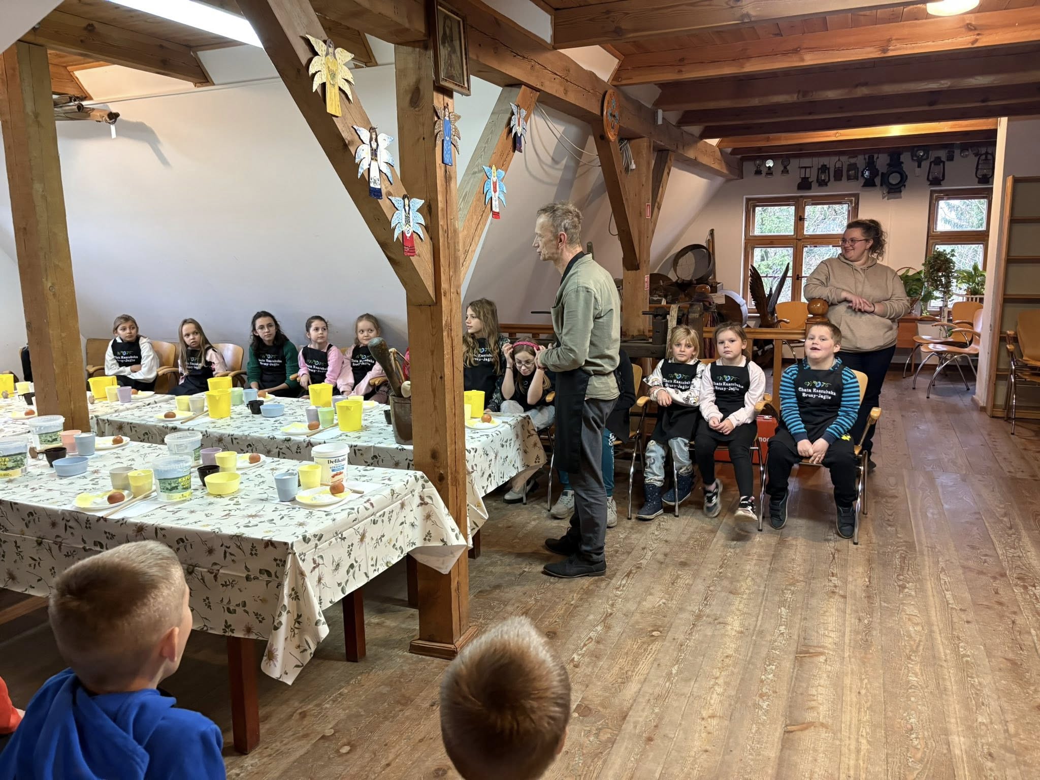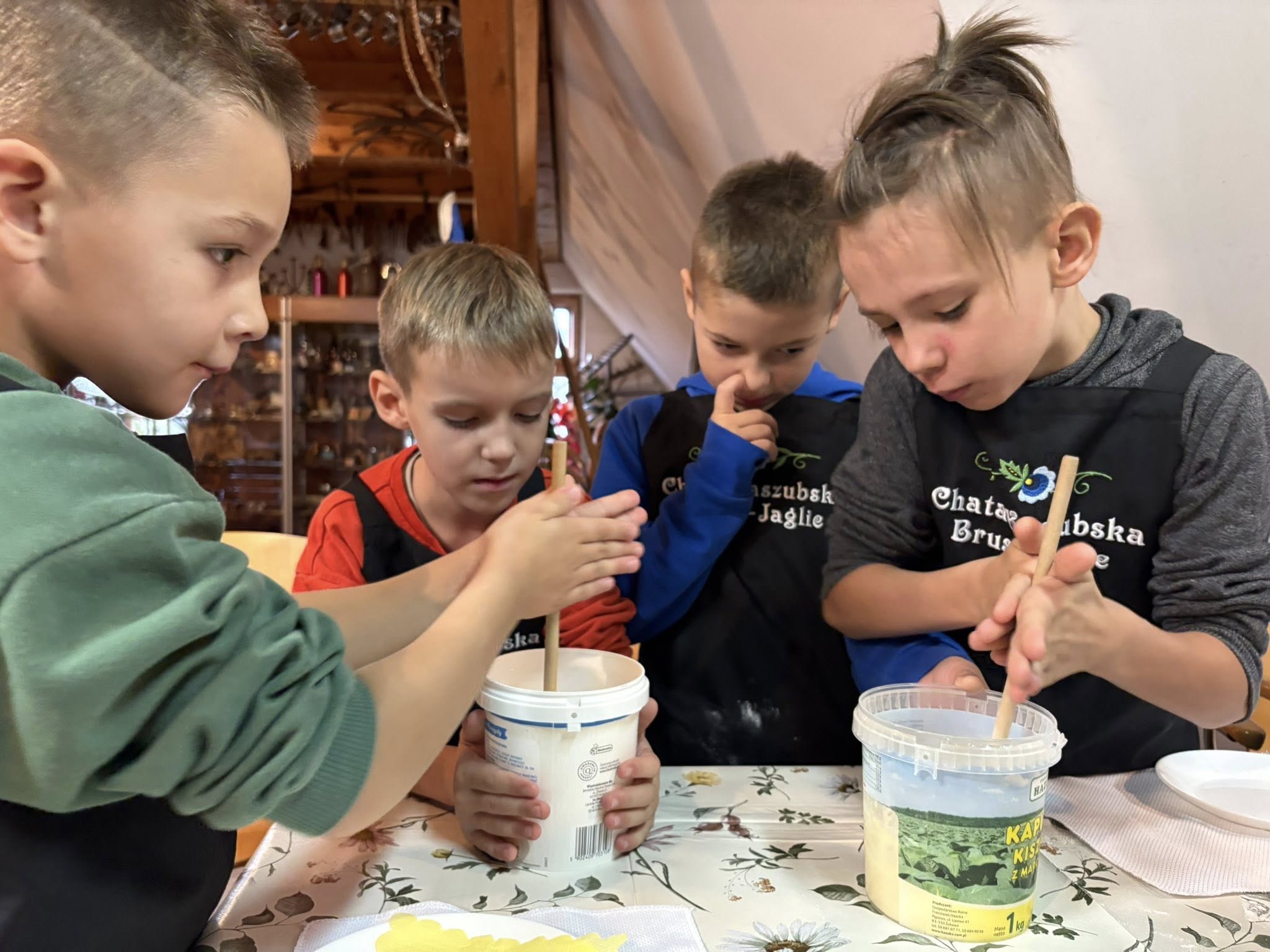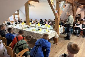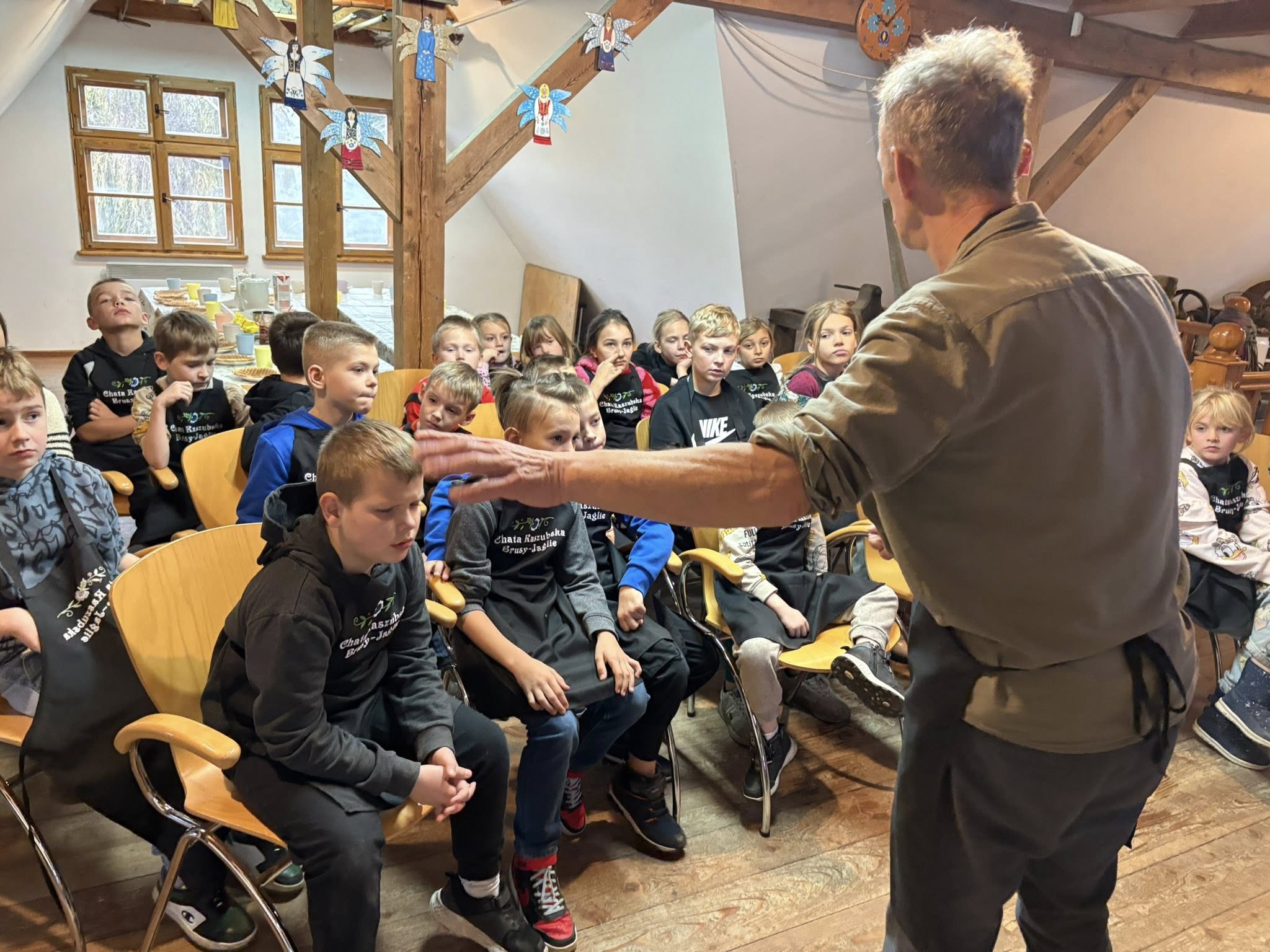 We wtorek (18.11) uczniowie klas 1, 2 i 5 SP w Gotelpiu wybrali się na wycieczkę do skansenu „Chata Kaszubska” w Brusach-Jagliach. W ramach zajęć z języka kaszubskiego odbyły się tam warsztaty ognistych wafli. Dzieci samodzielnie przygotowywały wafle, poznały ich historię oraz aktywnie odpowiadały na pytania prowadzących.