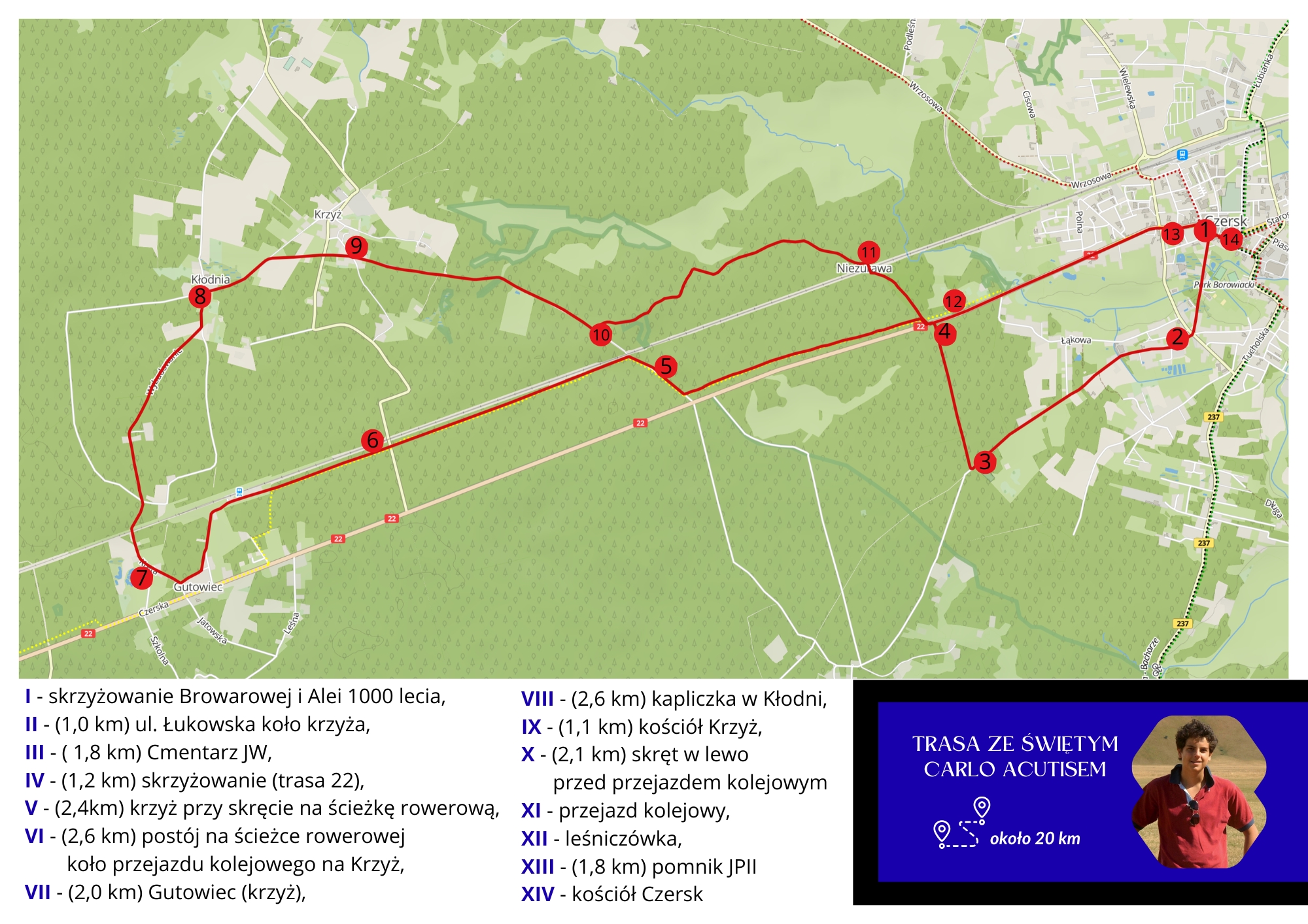 Trasa ze św. Carlo Acutisem – 20 km