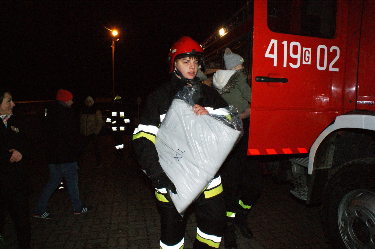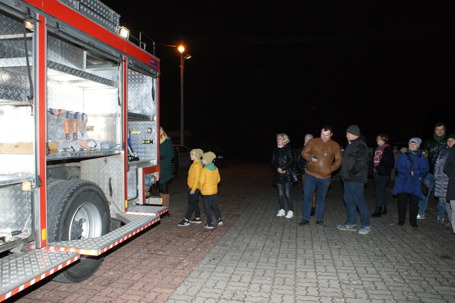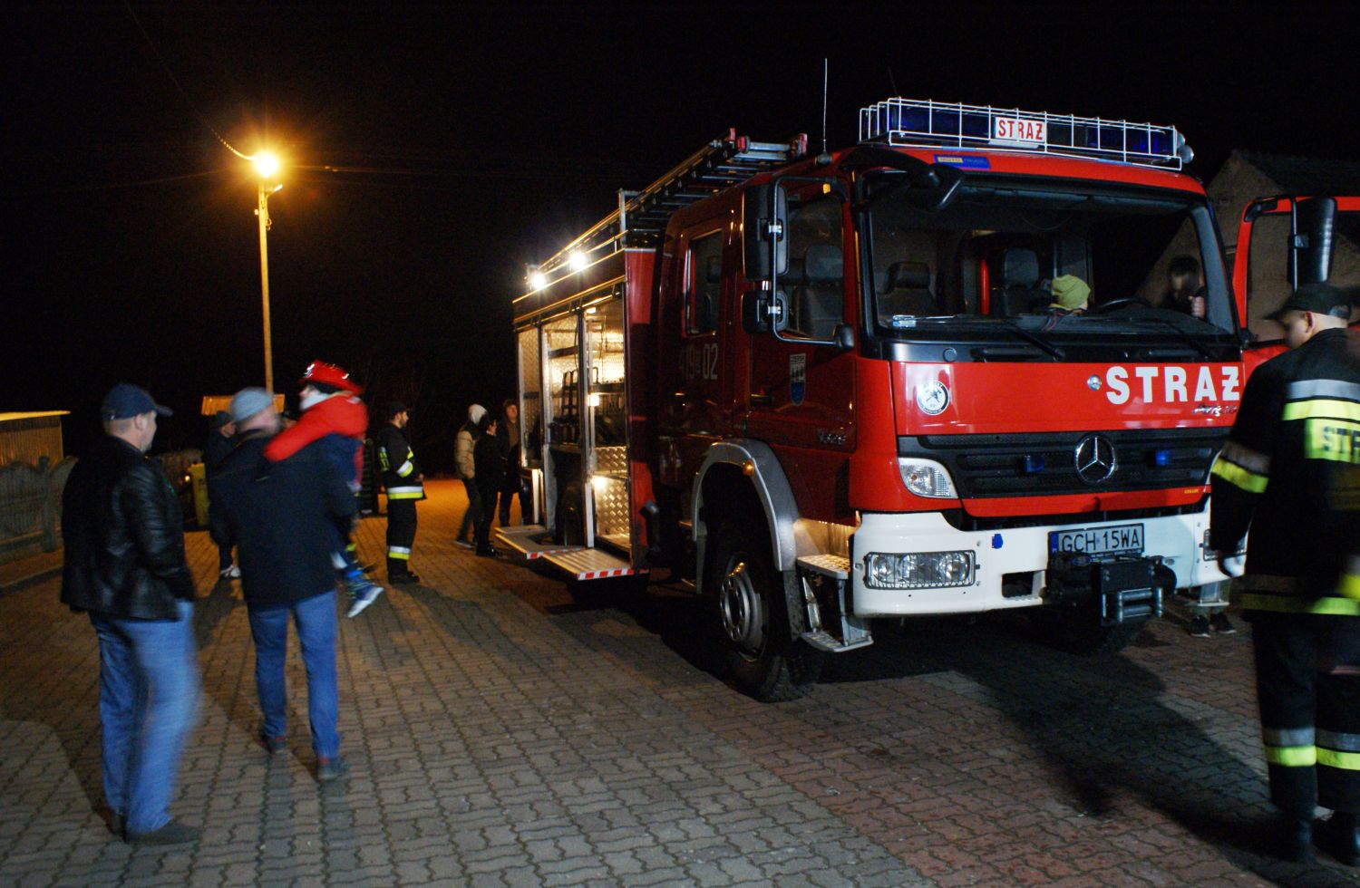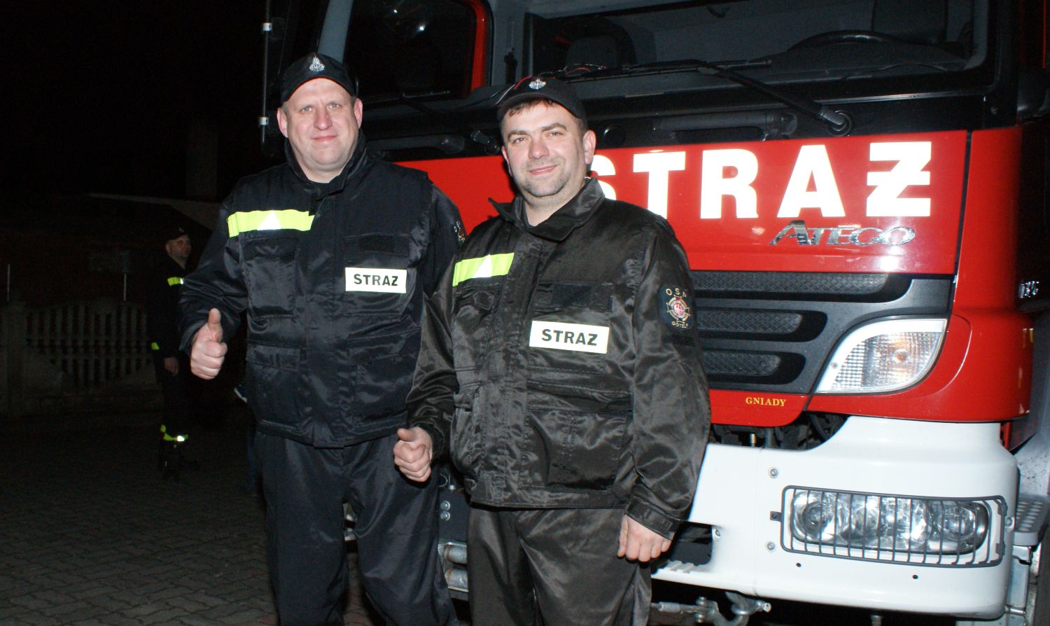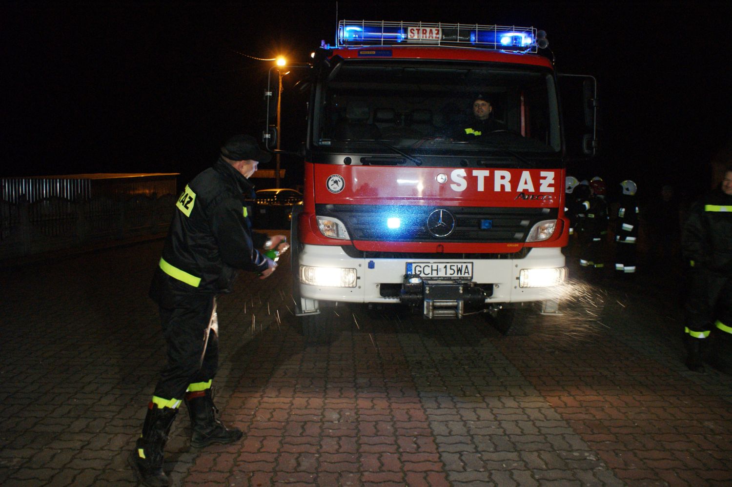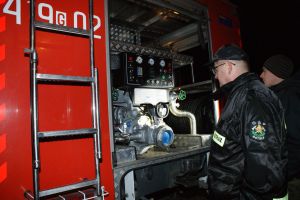 Zebrani nie kryli zadowolenia. Były race na powitanie, szampan i wspólne oglądania wozu bojowego. Sześcioosobowy pojazd z 2007 roku jest w bardzo dobrym stanie. Do tej pory przejechał raptem 17 tysięcy kilometrów. Posiada napęd 4x4 oraz zbiornik z wodą o pojemności 2,5 tysiąca litrów.