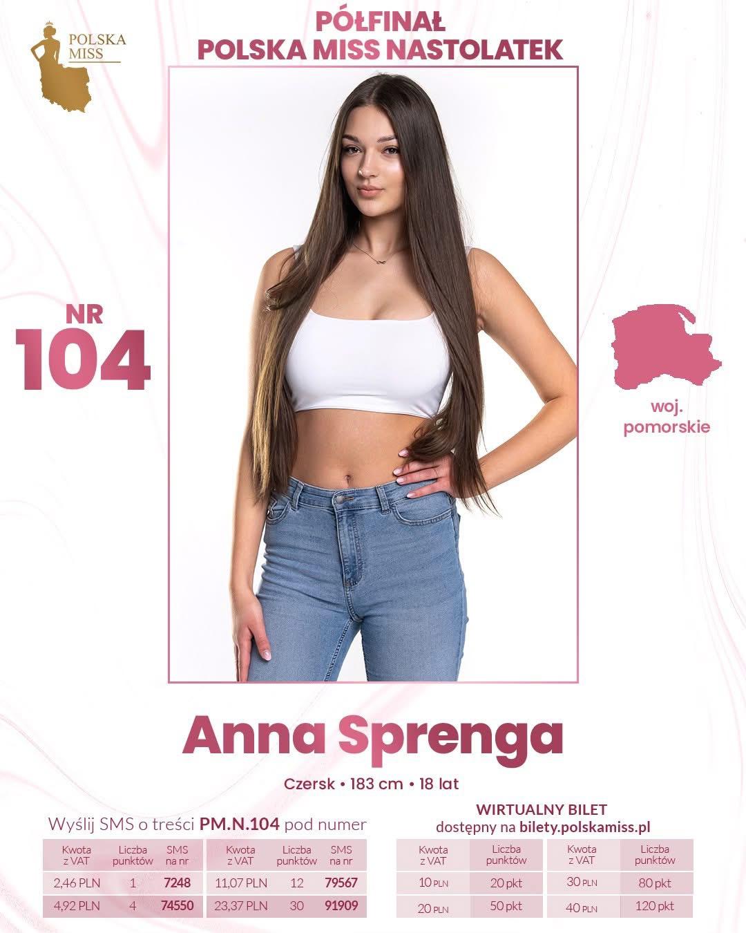 Polska Miss Nastolatek 2025 - Czerszczanka Anna Sprenga