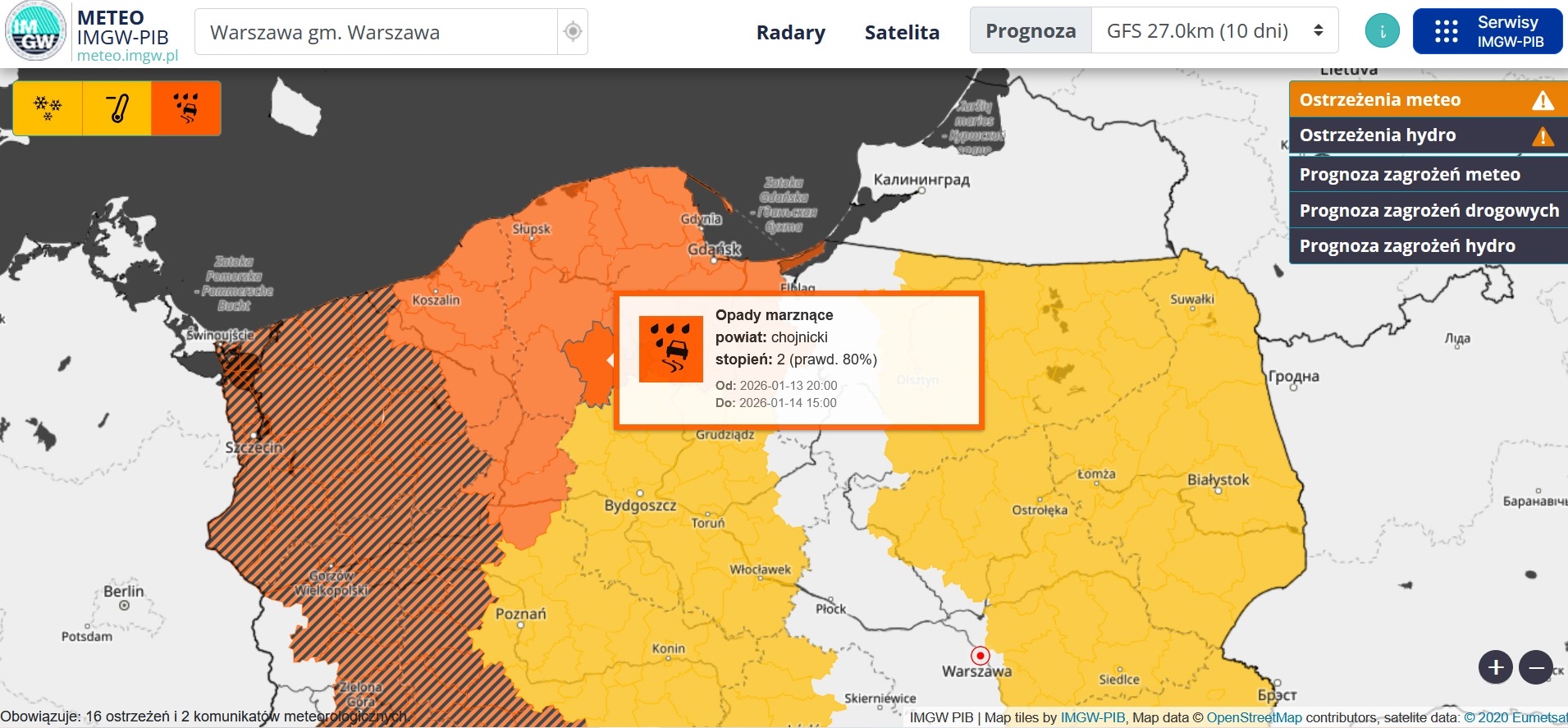 POW. CHOJNICKI. Ostrzeżenia meteorologiczne: Opady marznące, stopień 2