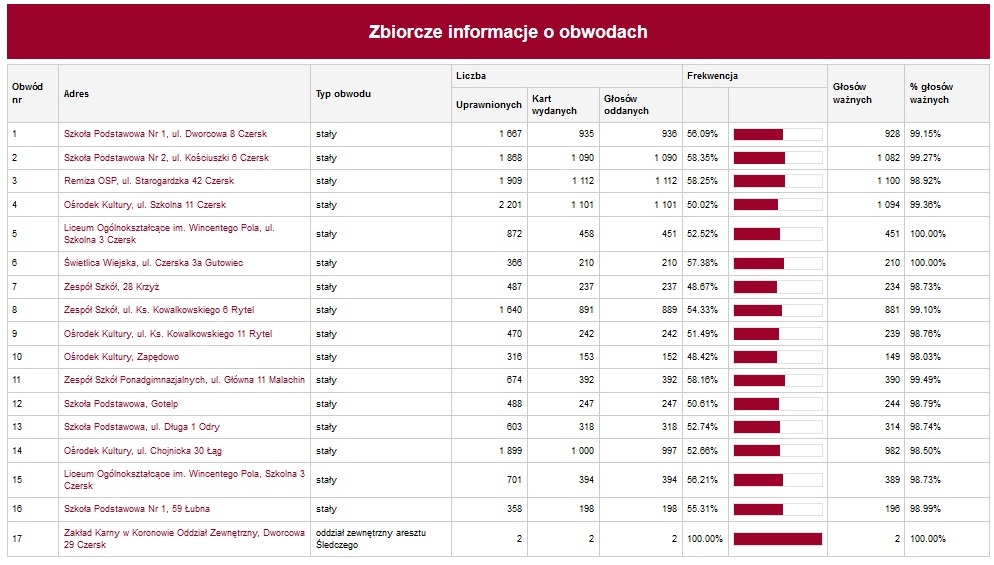 Szczegółowe wyniki na burmistrza Czerska (PKW) - TUTAJ