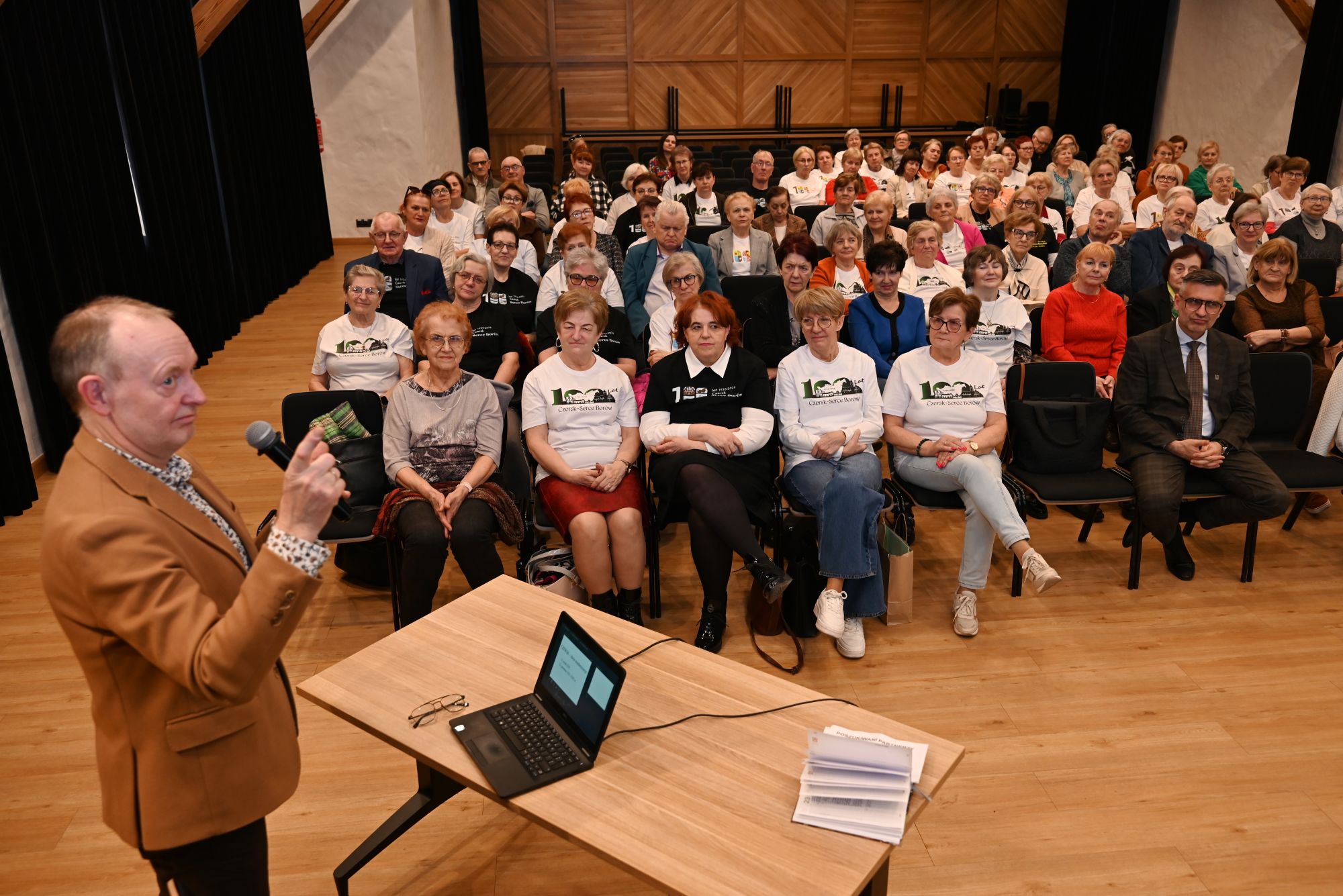 W poniedziałek (9.03) w ramach Uniwersytetu Trzeciego Wieku w Czersku odbył się wyjątkowy wykład z okazji 100-lecia nadania praw miejskich naszemu miastu. Seniorzy uczestniczący w wydarzeniu ubrani byli w specjalne koszulki z logo obchodów – dostępne w białej oraz czarnej wersji.
